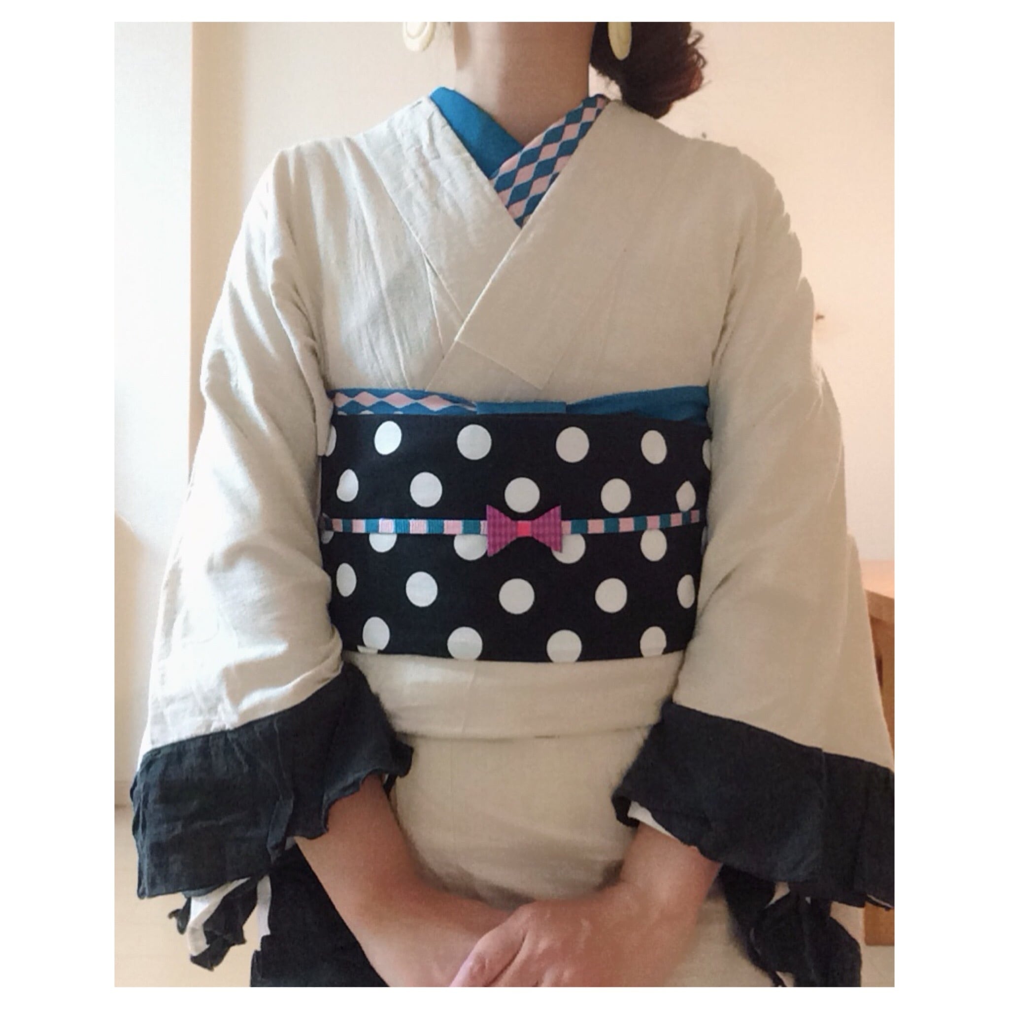 今いろいろな作家さんの可愛い帯揚げが沢山出てきていますが、折り返したりくるっとまわしたりしないと、左右非対称にならないものもある中、絶対左右非対称、アシンメトリになる帯揚げを作ってみたかったのです。